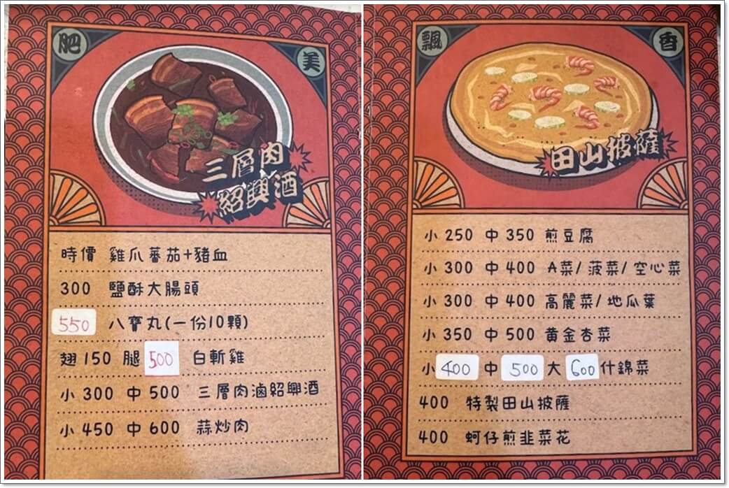 【高雄】田山餐館 洛陽店。米其林入選餐廳。台菜料理。必點魚翅烏骨雞湯、特製田山台式披薩