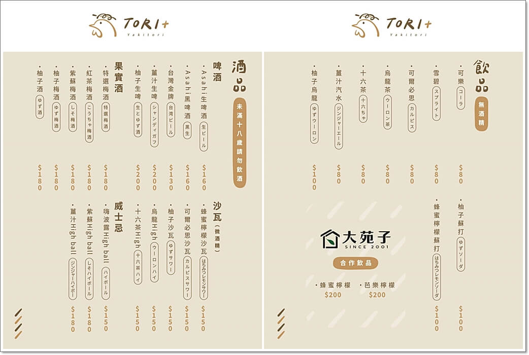 TORI+菜單