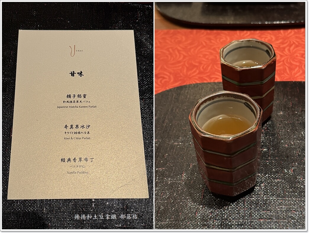 Ukai 的甜點從來不是隨便交差,精緻度完全延續整套懷石的水準。外觀先讓你眼睛發亮,入口又能感受到食材的細膩搭配——甜而不膩,清爽又帶點小驚喜。結果就是:不管你剛剛有多飽,這一道你一定會默默把盤子清乾淨。