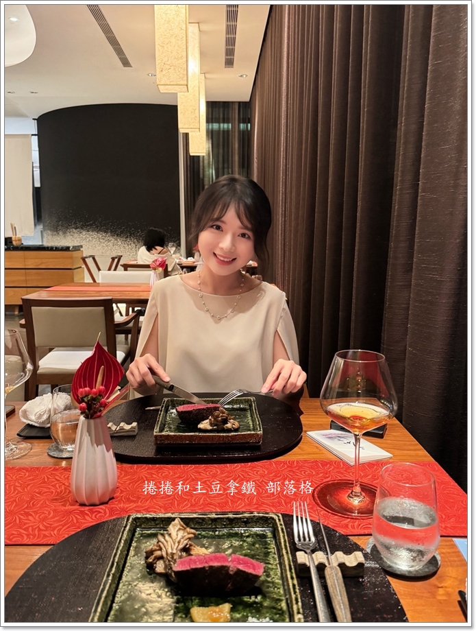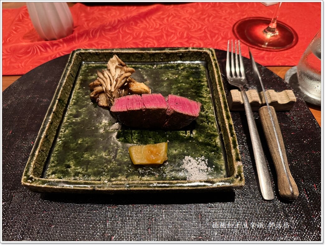 主廚幫它掌握在大概 三分熟,切開的時候那個鮮紅色澤真的有點犯規。入口完全沒有負擔的油膩感,也沒有血水流出,反而是牛肉本身的 保水感在嘴裡迸出來,你甚至能感覺它的纖維在輕輕斷裂,然後變成嫩到不行的口感。