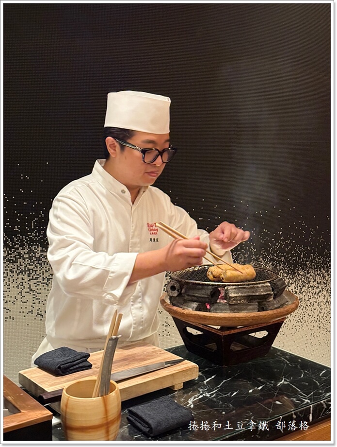 料理長把鴨肉和茄子一起包捲起來,搭配上 鹹度稍微偏高的茄子味噌,味道濃郁卻又不膩口。最棒的是,石板的餘溫可以讓你自己「微調」鴨胸熟度,想吃嫩一點、或再焦香一點都行。