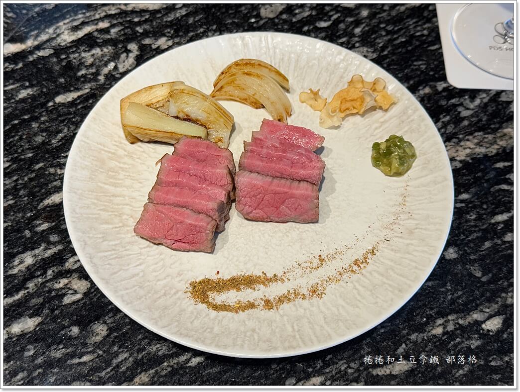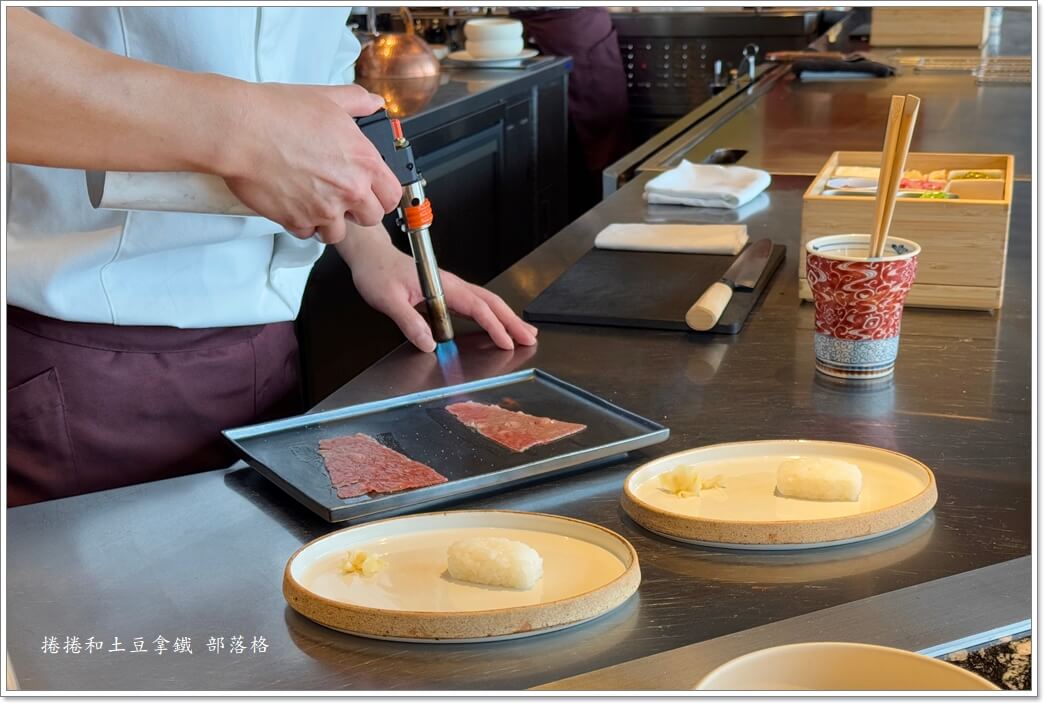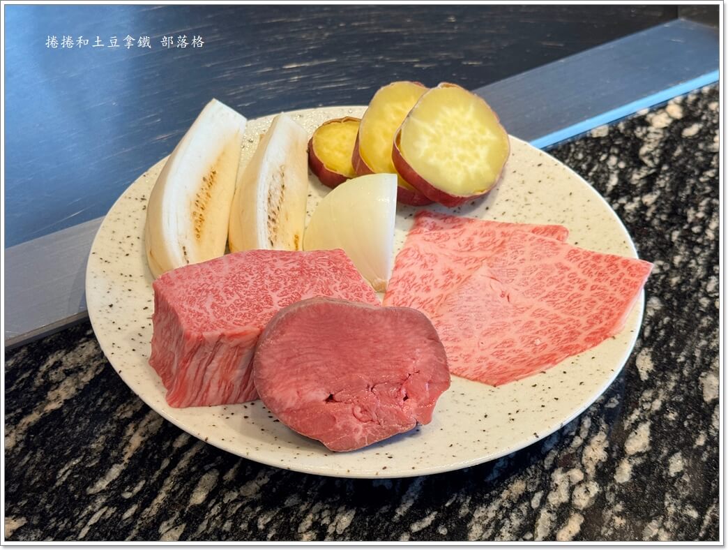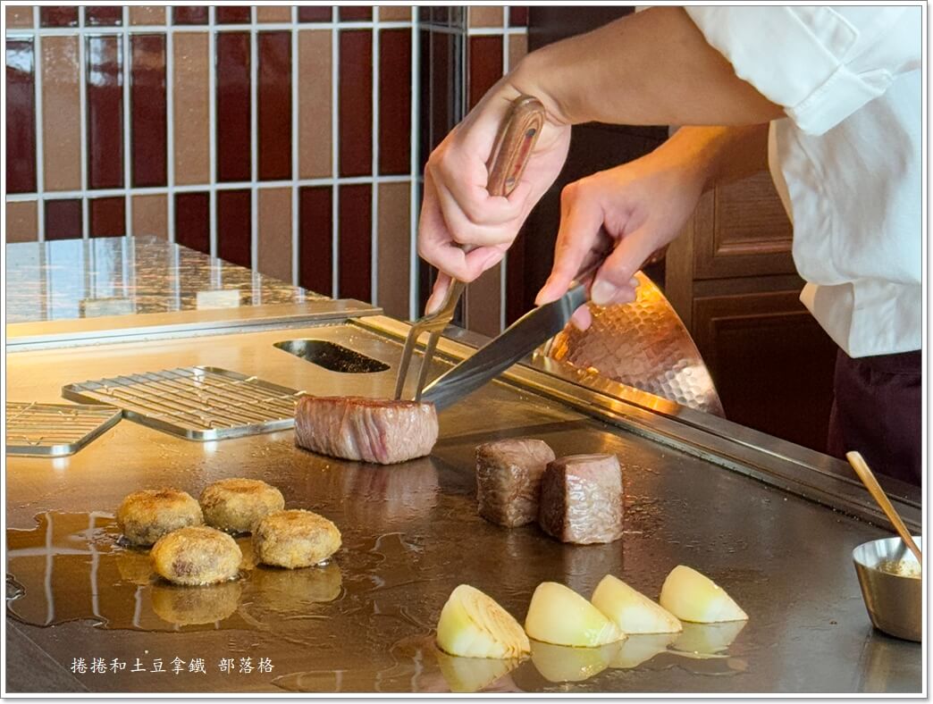 菲力的肉質非常嫩,油脂不多,但每一口都入口即化,吃得到牛肉本身的鮮甜與細膩。坐在鐵板前看師傅烤製,每一片牛排在鐵板上滋滋作響,香氣撲鼻,光視覺就已經很享受了。這種等級的和牛,午餐就能吃到,真的太奢侈又過癮~