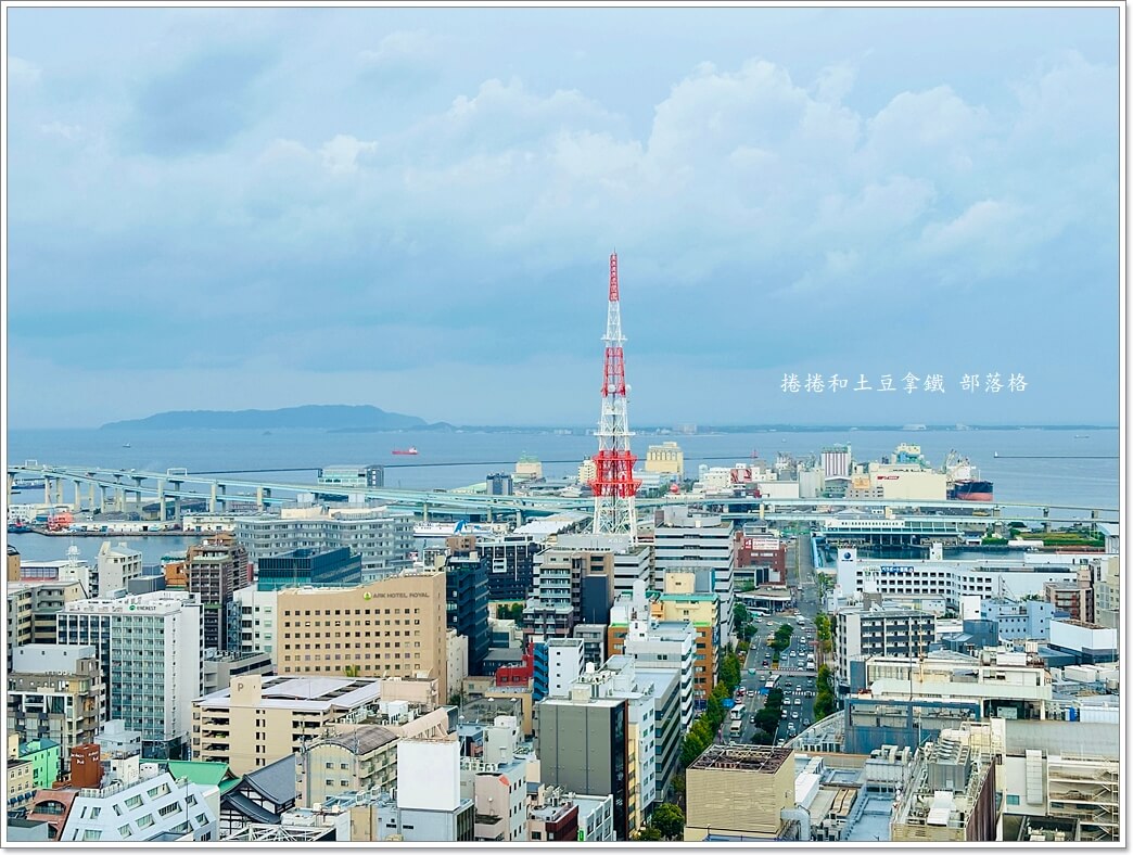 重點是餐廳整層樓挑高,窗外就是整個福岡市景跟博多灣的景色。
