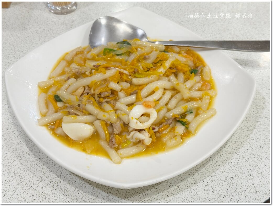 南瓜炒米苔目帶有自然甜味,米苔目滑順不糊爛,南瓜香氣讓整道菜多了份溫潤感,是少見但讓人印象深刻的主食選擇。