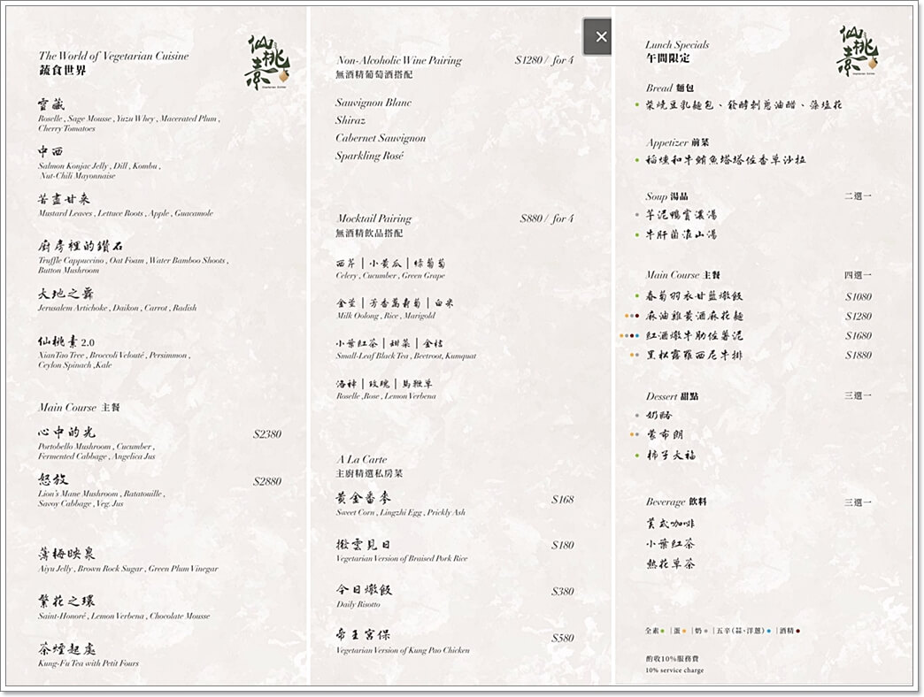 如果是在高雄,想找一餐有質感的 fine dining 蔬食料理,其實選項不算多。現在的仙桃素,已經走到一個很明確的位置,對於想在高雄認真吃一套蔬食套餐的人來說,仙桃素現在的狀態,很值得先放進名單裡。