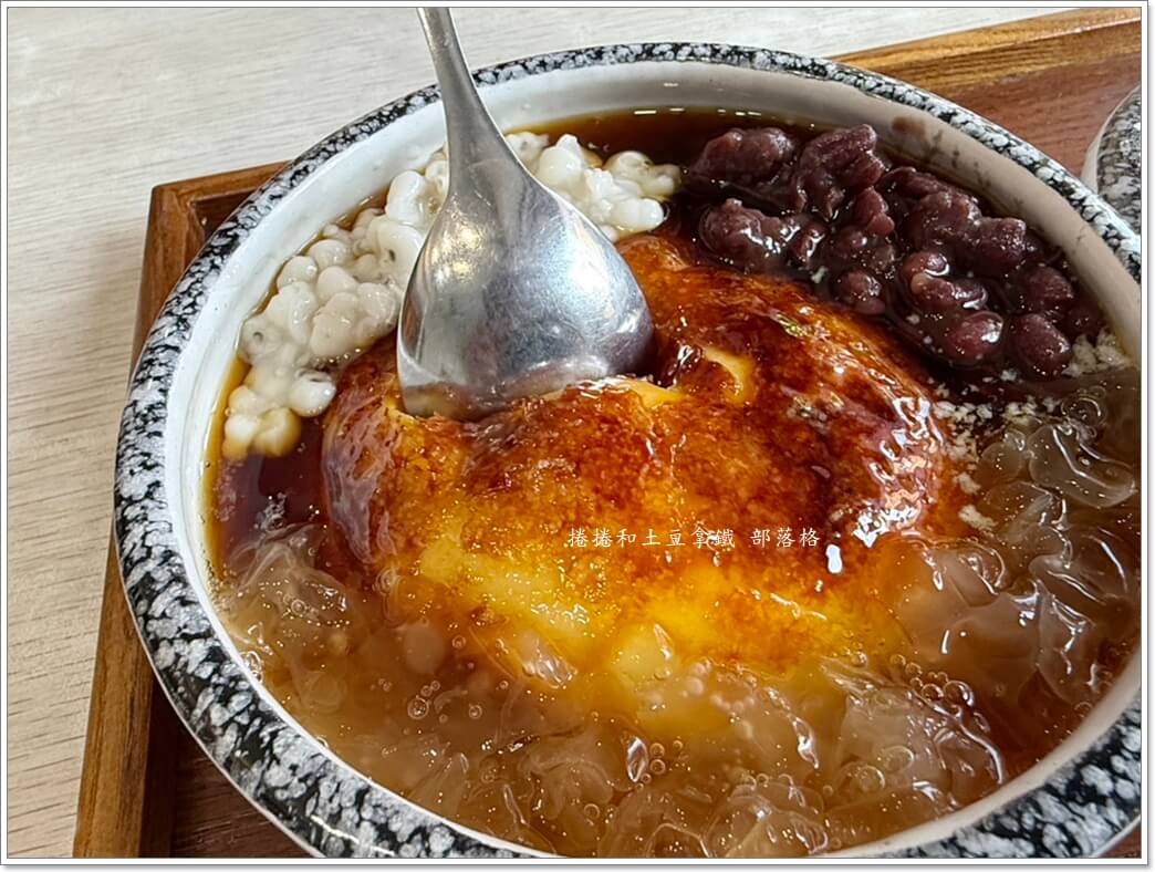 炙燒過的焦糖,敲起來很脆。以前大家都是吃炙燒焦糖布丁,沒想到原來炙燒焦糖豆花也很搭,老闆真有創意!