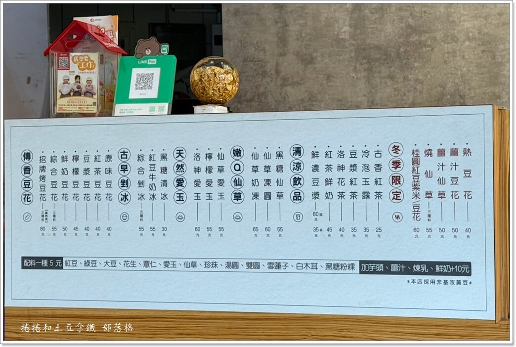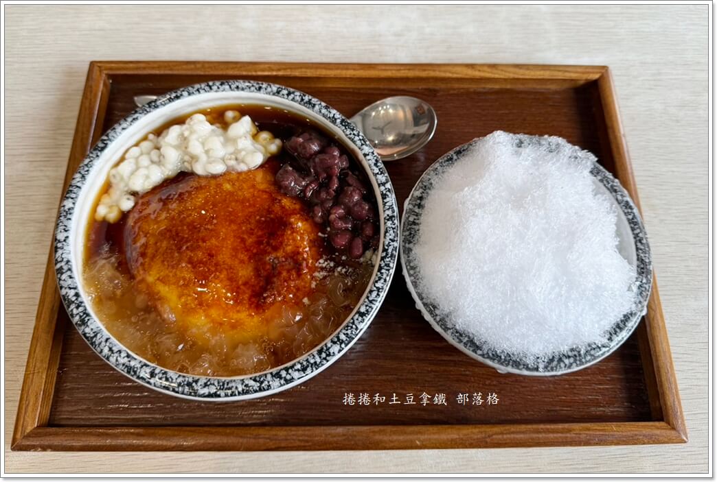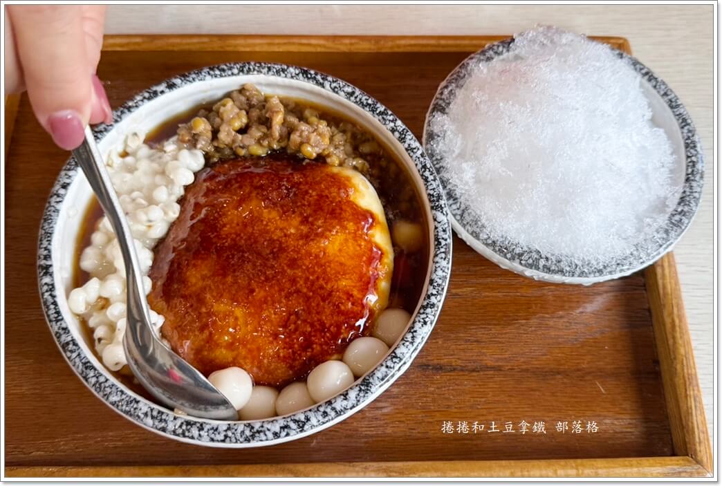來這一定要點招牌炙燒烤豆花,可以選三樣配料,若要多選就再加價,另外會配一碗清冰。