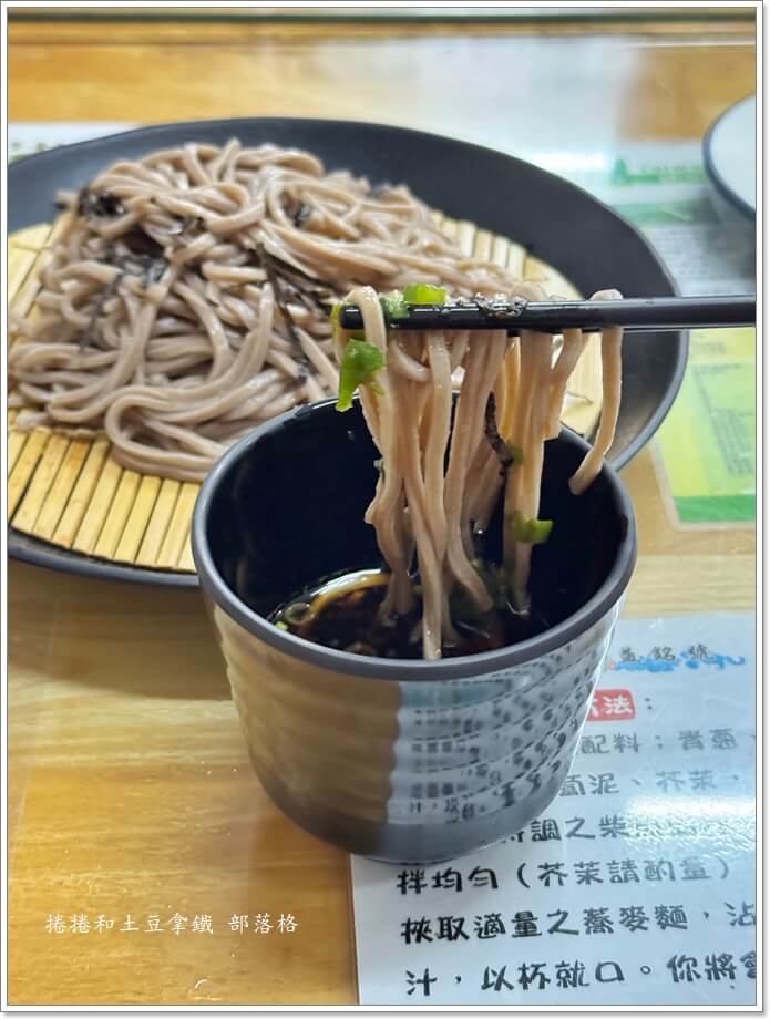 另外附上海苔、青蔥、哇沙米、白蘿蔔泥,和一杯柴魚醬汁。傳統日式蕎麥麵其實沒有配菜,純粹是吃麵條香味、彈力和醬汁鮮美度。如果是相當日式風味的商品,則會附上山葵醬、七味粉加入醬汁沾用。而這裡是加入一點點嗆味的哇沙米。