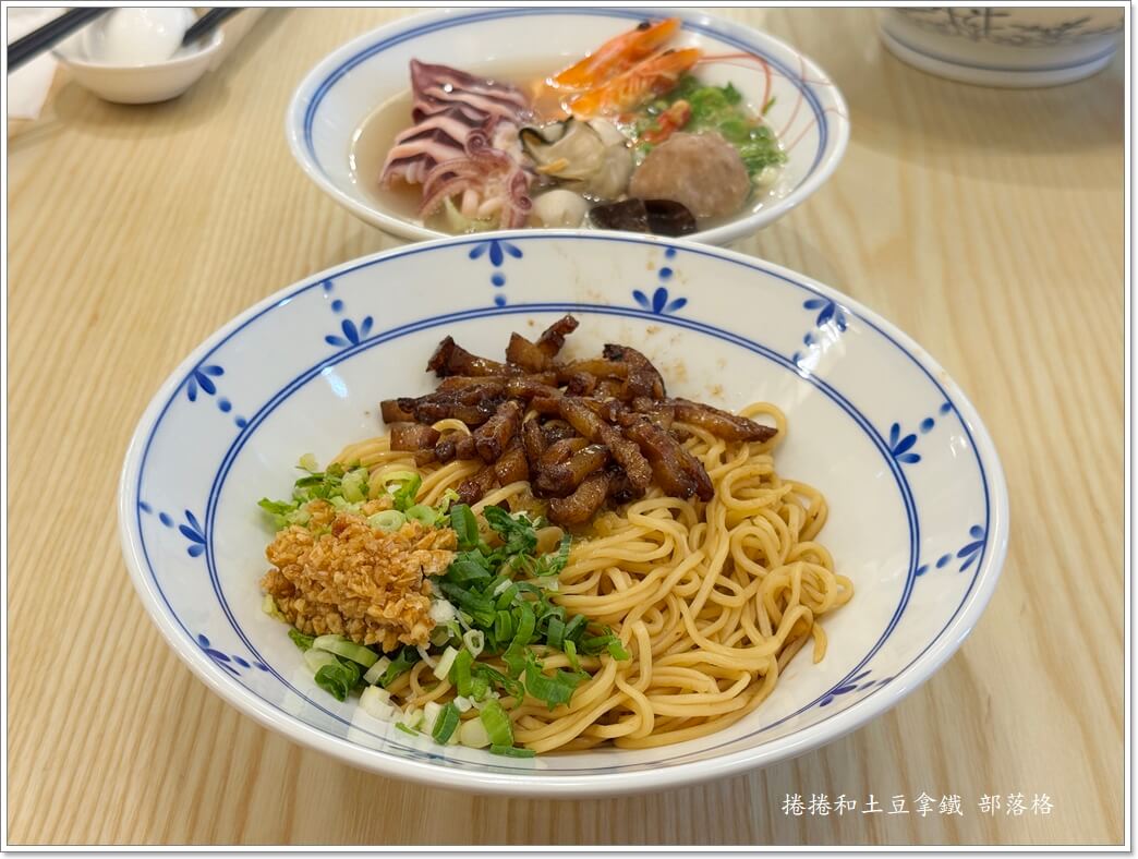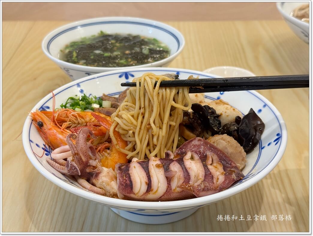 潮汕的吃法就是一碗乾撈麵配一碗湯,他們的總匯海鮮湯鮮味很夠,料很新鮮,份量也放得很實在。