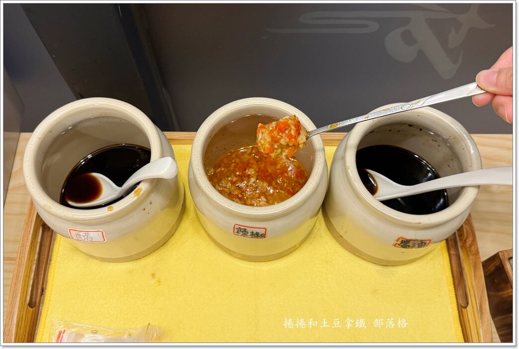 店裡的沾醬是可以自己去拿的,尤其是辣椒醬,是店家自己炒的。香氣很明顯,微辣但不死辣,拌進麵裡會多一層味道。